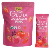 Manee Gluta Collagen Pink is a dietary supplement designed to enhance skin health, brighten skin tone, and reduce the appearance of wrinkles. Each pack contains 30 pieces of collagen-boosting goodness, enriched with glutathione for skin brightening and collagen for anti-aging benefits.