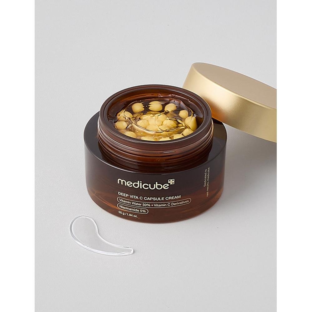 Medicube Deep Vita C Capsule Cream 55g is a glow-enhancing moisturizer packed with stabilized Vitamin C, Niacinamide, and Glutathione to target dullness, dark spots, and uneven skin tone. Each golden capsule melts into a silky cream, delivering fresh antioxidants that brighten and protect your skin. The lightweight, non-greasy formula absorbs quickly, deeply hydrates, and improves skin clarity while boosting radiance.
