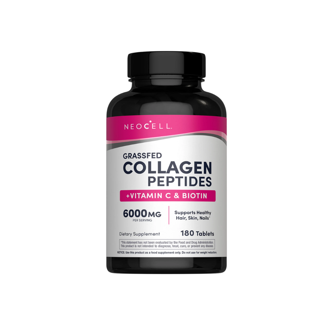 Revitalize your natural beauty from within with NeoCell Grass-Fed Collagen Peptides, specially formulated with Vitamin C and Biotin to support healthy hair, skin, and nails. Each serving delivers 6000 mg of collagen peptides, sourced from grass-fed, pasture-raised bovine to ensure purity and potency.